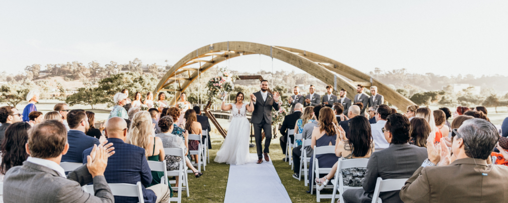Located on the first tee, our most sought-after ceremony setting features golf course views and a stunning wood suspension bridge as its backdrop. With rolling hills, manicured fairways, and the San Diego River just beyond, this space offers a truly unforgettable setting to say “I do.”